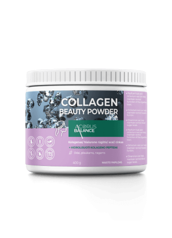 Collagen Beauty Powder Acorus Balance – tai kolageno milteliai, skirti papildyti kasdienę mitybą kolagenu ir kitais ingredientais, kurie dažnai naudojami grožio papildų sudėtyje. Kolagenas yra vienas svarbiausių baltymų žmogaus organizme ir dažnai naudojamas maisto papilduose.
