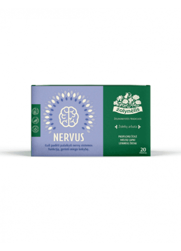 Nervus žolelių arbata nervų sistemai atsipalaidavimui miegui – tai augalinis mišinys pakeliuose, skirtas kasdieniam vartojimui. Arbata gali būti įtraukiama į vakaro rutiną kaip dalis subalansuotos mitybos ir sveiko gyvenimo būdo.