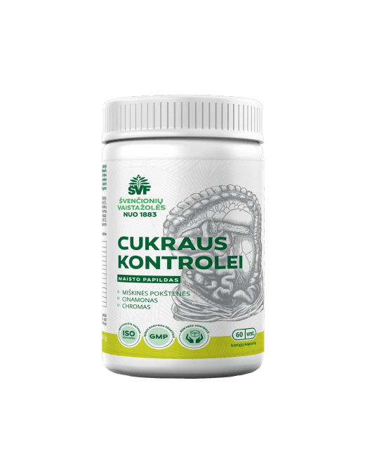 Cukraus kontrolei kapsulės Švenčionių vaistažolės – tai maisto papildas, kuriame naudojami ingredientai, dažnai randami kasdienės mitybos papilduose. Sudėtyje naudojami tokie komponentai kaip chromas, cinamonas ir augaliniai ekstraktai.