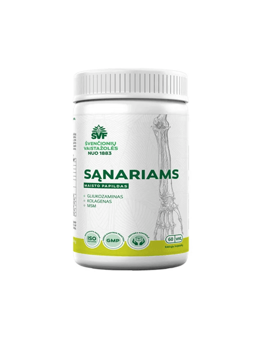 Sąnariams kapsulės Švenčionių vaistažolės – tai maisto papildas, skirtas papildyti kasdienę mitybą ingredientais, kurie dažnai naudojami produktuose, susijusiuose su sąnarių funkcija. Sudėtyje naudojami tokie komponentai kaip gliukozaminas, kolagenas ir MSM.