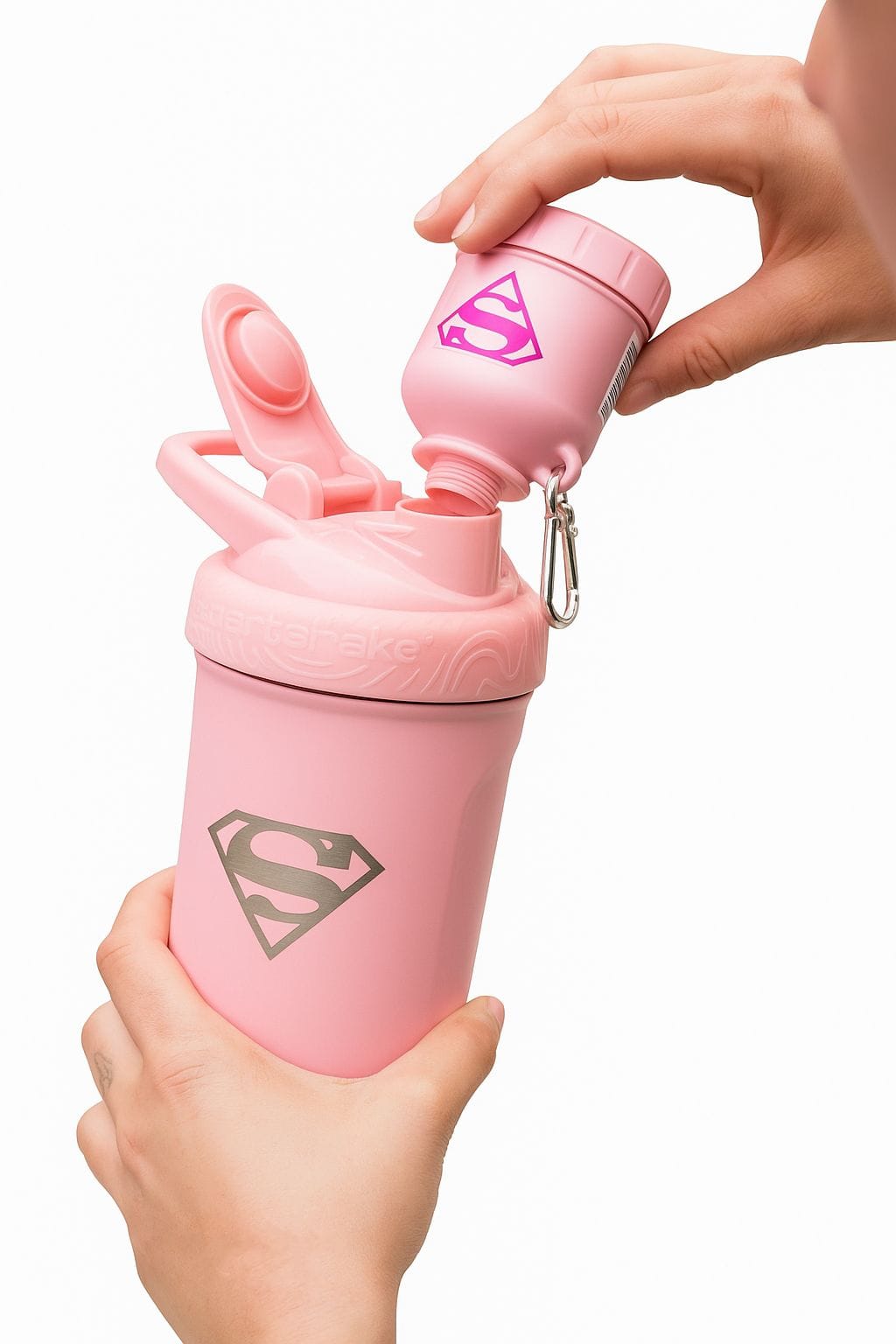 Supergirl SmartShake yra praktiškas ir stilingas piltuvėlis, skirtas milteliniams papildams, baltymams ar vitaminams laikyti. Pagamintas iš aukštos kokybės, BPA ir ftalatų neturinčio plastiko.